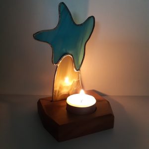Photophore vitrail Tiffany : Etoile bleue et sa traine brune
