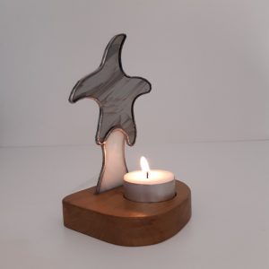 Photophore vitrail Tiffany : étoile grise sur traînée blanche