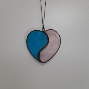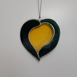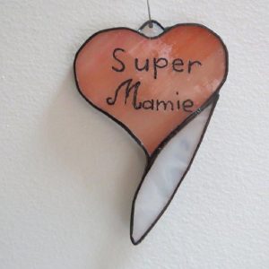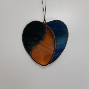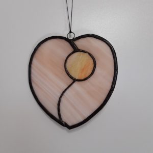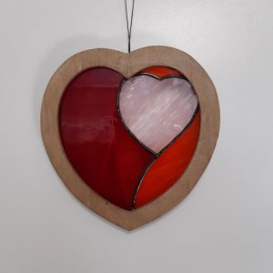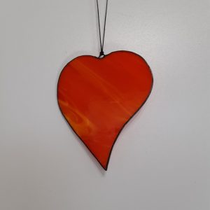 Mobile à suspendre en vitrail : coeur rouge/orangé