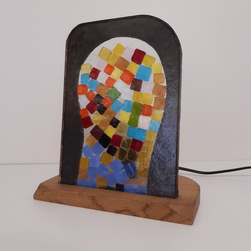 Be the first to review “Lampe en vitrail à verres flottants : Mosaïque”