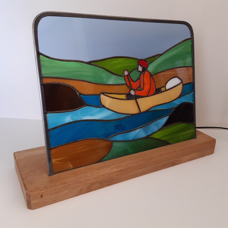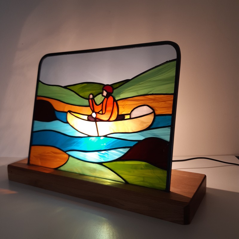 Lancez-vous “Au fil de l’Eau” à bord de ce canoë. De quoi accompagner une soirée télévision. Le sujet est présenté incliné sur son socle en chêne ciré, mini de plots anti-glissement. Création unique numérotée, livrée avec son certificat d’authenticité.