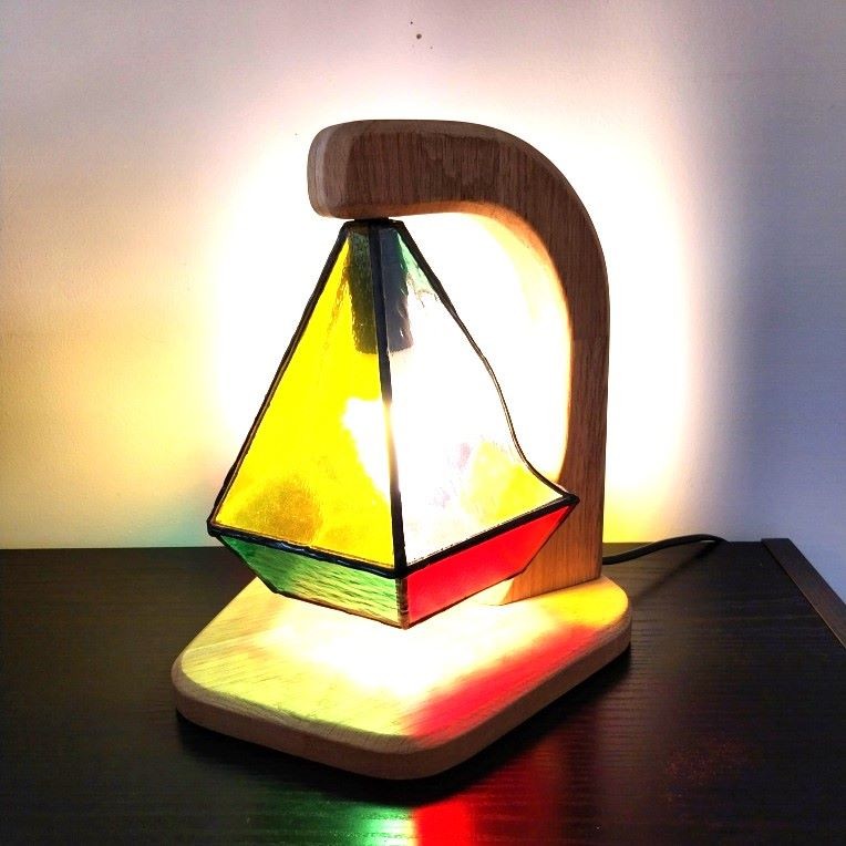 Lanterne réalisée en vitrail suivant la méthode Tiffany.