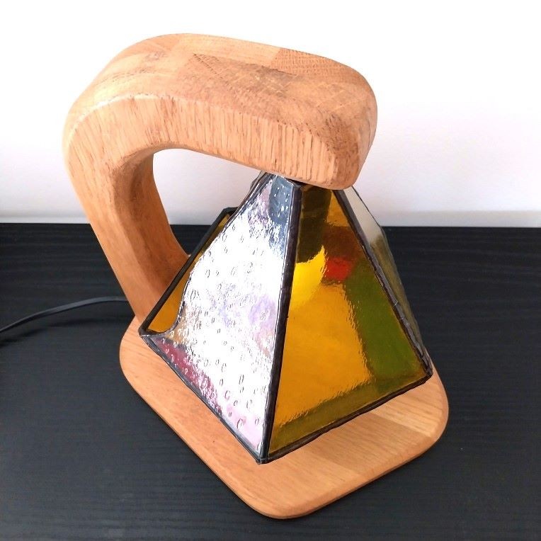 “QUINTETTE”, cette lampe aux 5 facettes, est surprenante, avec son support en chêne.