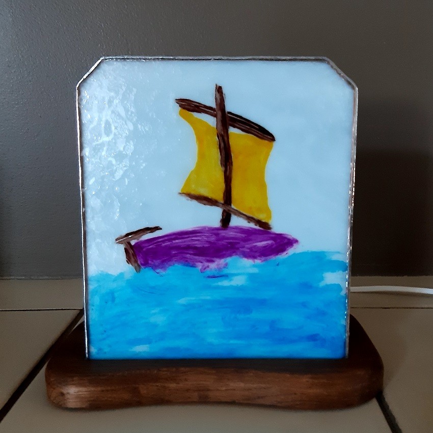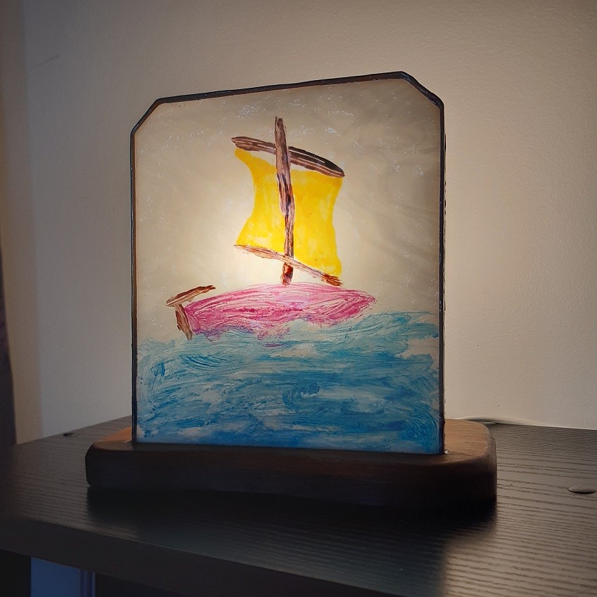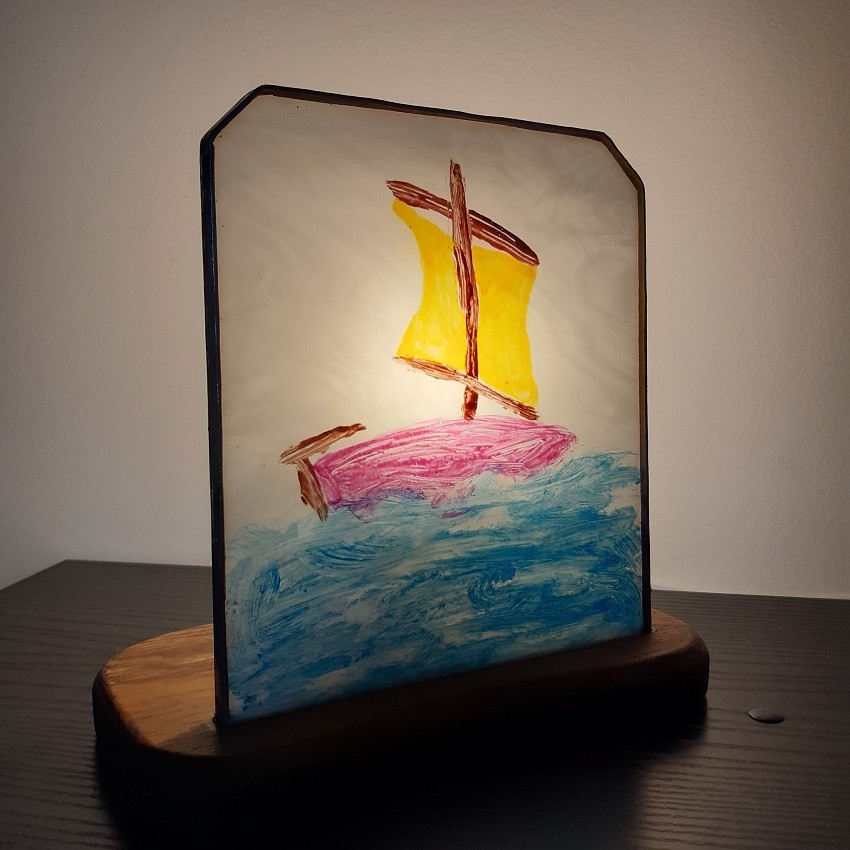 Cette lampe “Au gré du vent”, est idéale en chevet pour chambre d’enfant.
