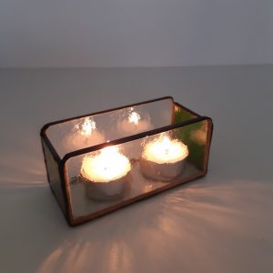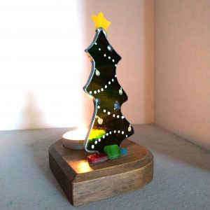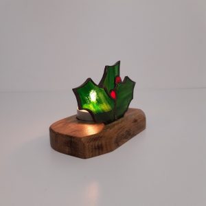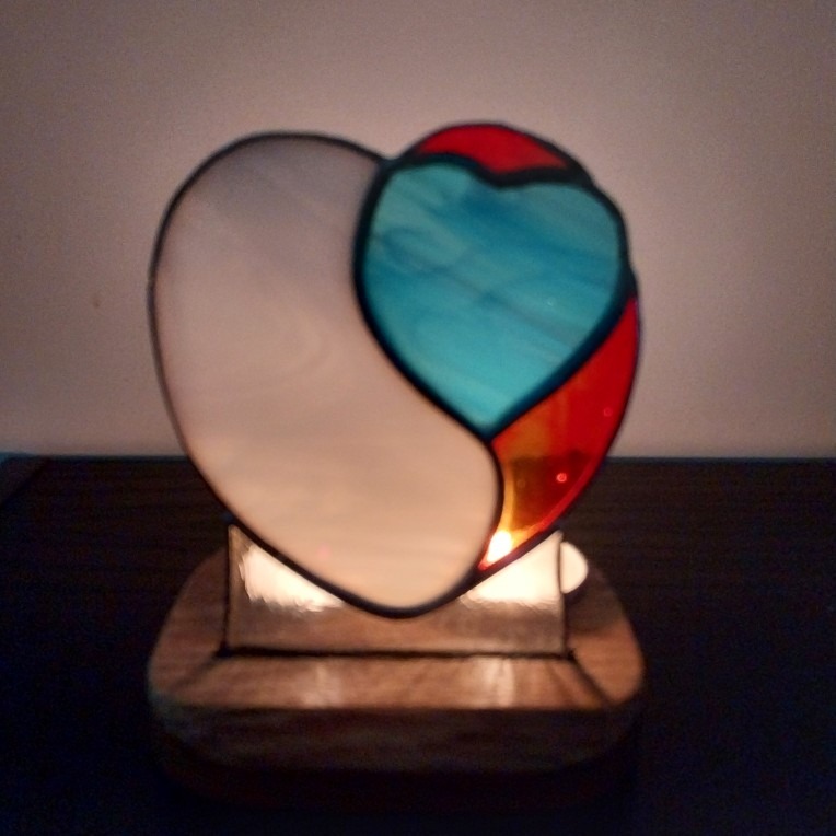 Des couleurs chatoyantes pour ce coeur monté sur un socle en chêne.