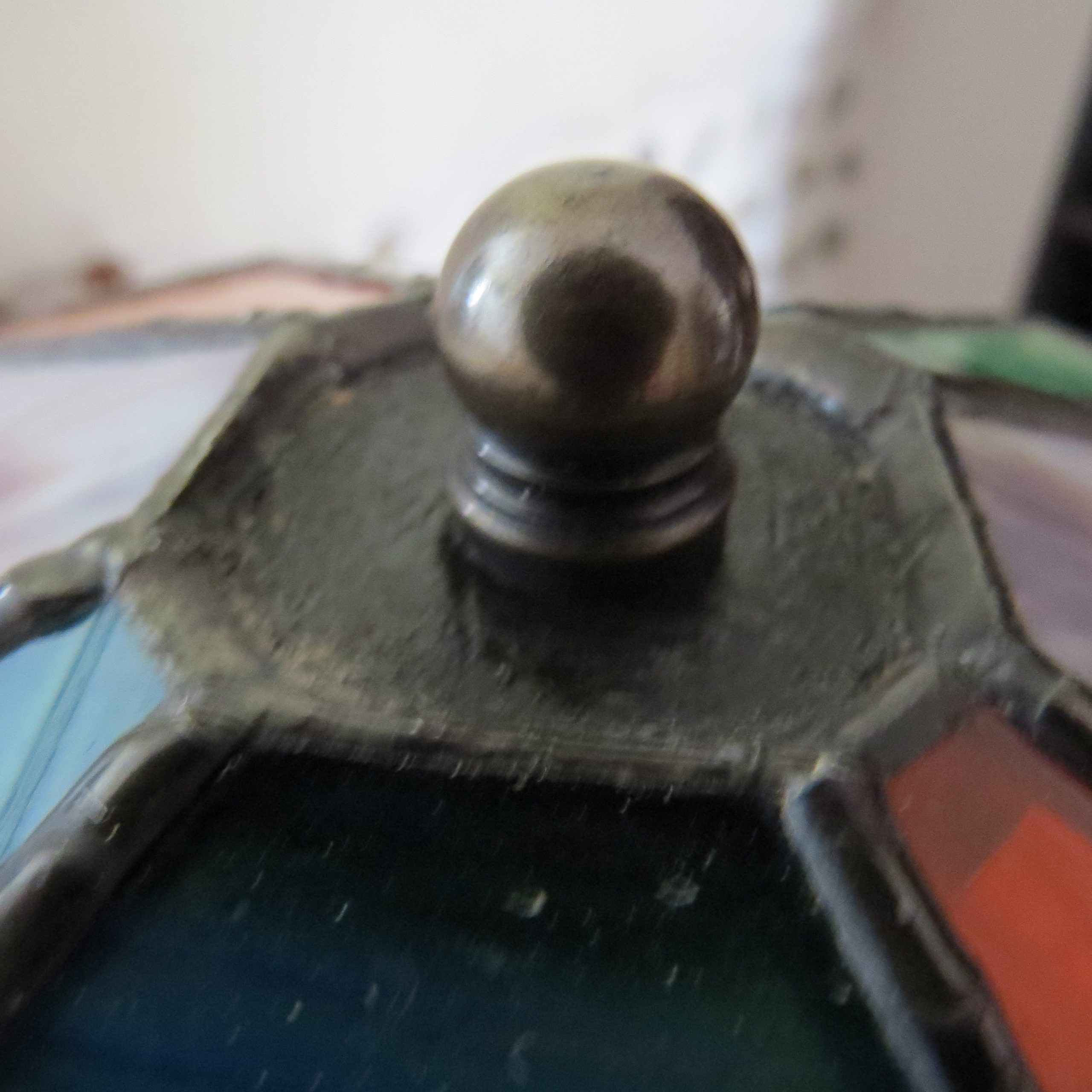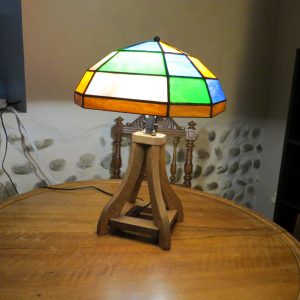 Compatible avec le chapeau “2X4” (en vitrail méthode Tiffany), l’ensemble ainsi constitué, devient la “lampe ETUDE” .