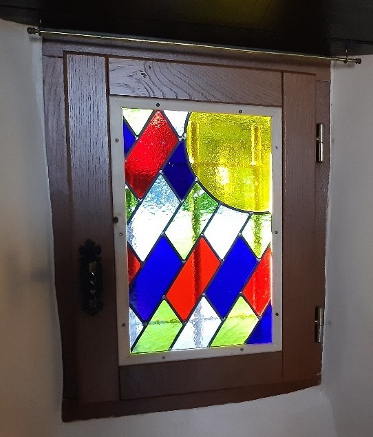 Suivant la méthode dite traditionnelle au plomb, ce vitrail crée l’enchantement sous la lumière du jour.